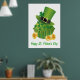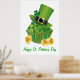 Lycklig St. Patrick's Day Leprechaun Hat, Guld Mynt och Cupaka med tre Shamrock Sprinkles Dessert Festive Illustration Teckning Poster