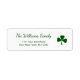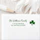 Patrick's Day Return-adressetikett, med en enkel grönt-schamprock- och skripttypografi. Du kan lägga till en egen anpassade med textmarkeringar. Ett roligt som tillägg till helgdagskorten och inbjudningarna.