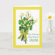 Stammar av gult från en blommar shrub, fitta och schamprockar som hålls tillsammans med en faux (inte äkta) båge av gult, grönt och vitt. Blommigt kort till St Patrick's Day för en gudmor. Art, image och verse © Shoaff Ballanger Studios, 2021.