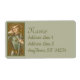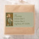 S:t Johanna av Arcs, ”Orléans-jungfrun”, är kvinnliga militära personals skyddshelgon. I denna framställning betonas hennes militära karriär. S:t Johanna är iklädd samtida 1400-talsplåtarmor och bär på en sabel i en svärdsskida dekorerad med fleur de lis. Fleur de lis, en stiliserad lilja, är ett motiv rikt på heraldisk, politisk och religiös betydelse. + Högtid: 30 maj + Bildkälla (JM 28): Gammal bild på S:t Johanna av Arc, ursprungligen publicerad i kromolitografi av Josef Müller Art Publisher, München och New York, första kvartalet av 1900-talet, från designerns privata samling av religiösa efemera. Detta är bara en av över sextio bilder i en mycket populär stil av fromma tryck som gavs ut i flera storlekar och format av Müller vid sekelskiftet förra århundradet. + Föredrar du en annan färgkombination? Se vykortet Färgpalett för