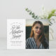 "Så börjar äventyret" manus minimalistisk svart-vit fotograduation annons. Personifierad med ditt examensår, namn, skolnamn och foto. © Kimbellished, LLC