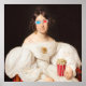 Rolig konstnärlig pjäs av en gammal målning med en kvinna som bär 3D-glasögon och en låda popcorn.