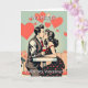 Söt retro-kärlek kyssande omgiven av popkonst-hjärtan i en seriestil. Så glad att du är min Alla Hjärtans dag!