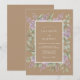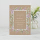 Denna design har en varm jordtonad bakgrund som ger en vacker grund för de blomsterliknande elementen. Ömtåliga kvistar av lila syren och mjuka gröna eukalyptusblad är skiktade runt mitten. Invändigt vitt spetsliknande detaljer tillför en touch av vintage elegans. Perfekt för en rustik utomhusfest, färgpaletten kombinerar tan, lavendel och salvia grön.