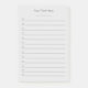 Lägg till ditt namn, ditt företag namn eller annan text till dessa enkla maskulin silver grått Att göra-lista med infogade Post-it®-anteckningar med kryssrutor och utrymme för rätt datum. Visas är storlek 4x6. Denna användbara organisation för personlig av anpassningsbar verktyg skulle ge en fantastisk gåva till en student, chef, medarbetare eller använda i ditt hem. Designad vid samtal.