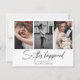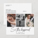 Meddela om din glada hemflykt med vårt "Så det hände" flerbilder vykort i galleriformat! Detta charmiga vykort har en stilren design som visar flera foton och fångar de speciella ögonblicken av din intima firande. Perfekt för att dela dina spännande nyheter med vänner och familj, låter detta vykort dig vackert visa höjdpunkterna från din stora dag. Tillverkat med omsorg och detaljrikedom är det ett förtjusande sätt att låta alla få vara med och dela din nygifta lycka.