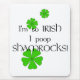 Det här är en söt musmatta om du har irländska rötter, med några gröntar schampyrer spridda och texten säger: "Jag är så irländsk i Poop Shamrocks!"