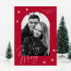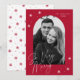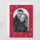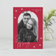 Modern helgdag och elegant-kort med ditt foto som visas inuti en röd båge ram. Vacket snöflingor visas i hörnen med frasen "Så mycket merry" i trendigets vita skript. Anpassa framsidan av fotoporten ram-julkortet genom att lägga till ditt namn och året. Kortet återgår till visningen med en röd snöflinga mönster.