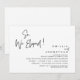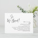 Modern svart script-tema, bröllopsinbjudan efter rymning (SÅ, vi rymde). Det är perfekt för din efterbröllopsfest / firande efter bröllopet. Lägg till dina detaljer i matchande svart typsnitt / bokstäver.