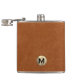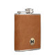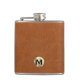 Enkel monogrammerad kolv har en modern utformning med en borstad metallisk guld monogramsymbol på ett sable brunläder som ser ut som en texturerad bakgrund. Perfekt för födelsedagar, studenten, pension, marskalkar i bröllop och annat.
