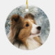 Snygg, snygg Sheltie, Shetland Sheepdog, med julklapp i bakgrunden hundälskare keramisk julprydnad