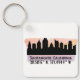 Snyggtens fyrkantiga nyckelkedjor har en skyline silhouette av Sacramento, CA med karta-koordinater på vattenfärgsbakgrunden stänk.