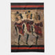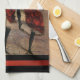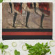 16" x 24" kökshandduken med en avbilda av tre franska Cancandansare i röda klänningar och sned boll-brättet befjädrade hattar på vissna som smular väggen. Röda satängrandgränser. Se att matcha trasaservetten, den pappra coctailservetten, trasabordstablett, papper bordstablett och underlägg. Se den hela Cancankökshandduksamlingen i linnena för FOOD/BEV | dela upp.