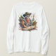 Een skelet compleet met een stoere cowboy-hoed en laars dat in een feestelijke houding, met één arm omhoog geheven, proost op het nieuwe jaar '2025' met een sprankelende champagneglas in de hand. Dit ontwerp is perfect voor iedereen die houdt van een beetje humor en een unieke stijl tijdens de jaarwisseling!