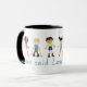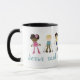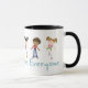 Ungar av olika färger kommer på denna mugg med ord "Jesus sade tillsammans kärlek alla.", I denna version har ungarna inga ansikten som betonar etniska skillnader.