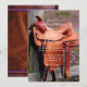 En vackert tillverkad lädersadel vilar på toppen av ett väderbitet trästaket, mot en drömlik bakgrund av lila vildblommor. Denna lugna lantliga scen frammanar andan av en rustik bröllopsfest, symboliserar frihet, tradition och det tidlösa charmiga i det stora öppna landskapet. Perfekt för västerländsk bröllopsinspiration eller hästälskare som knyter knuten.
