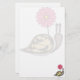 Sadie som den paisley snigeln ler, som hon scoots along i henne görade randig snäckan under henne favorit- rosa blommor.