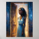 I bilden står en mörk-flådd kvinna bredvid en öppen dörr, vars uttryck är fyllt av sorg. Tårar flödar ner kindorna och lyssnar i det mjuka ljus som spills genom dörröppningen. Hennes hår ramar hennes ansikte, som understryker djupet på hennes känslor. Hon bär en enkel, blommande klänning som ökar känslan av sårbarhet. Bakgrunden är mjukt suddig, teckning fokuserar på sitt påfallande uttryck och den tysta, somliga atmosfären. Scenen väcker en stark känsla av längtan och hjärtan, som om hon fångas mellan två världar.