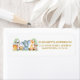 Watercolor Safari Animals Greenery Baby Shower-Returetiketter. I baby djur ingår Elephant, Monkey, Giraffe, Rhino, Zebra och Lejon om fern löv. Vattenfärgad botanik Greenery. Guld