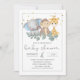 Kön Neutral Safari Animals och Grey Baby Shower-inbjudan. Party inbjudan har en elefant, apa och giraff med grönt löv och guld punkter. Mamma att vara kommer kärlek att vara den här moderna, trendig, söta Safari-temade inbjudan till babydusch.