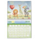 This safari-themed calendar includes cute lions, giraffes, elephants, and jungle illustrations throughout the seasons. Personalize for a fun room decor and school organization tool.