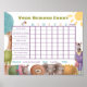 Ett belöningsdiagram med safaridjur som giraffe, noshörningar, lejona, elefant, hippopotamus, zebra och vattenfärg sol.