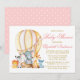 Safari Animals Rosa Balloon Dots Baby Shower Inbjudningar