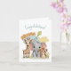 Whimsical safari-djur i vattenfärgdesign som inkluderar baby lejon, giraff och elefant. Perfekt för en baby shower eller för att gratulera till en graviditet eller födsel av bebis