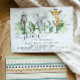 Safari-babyduschinbjudan med djungeldjur, elefant, giraffe och zebra. Baksidan av inbjudan har en färglös stripe mönster.