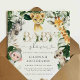 Gratulera till din lilla vild med den här hedervärda inbjudan till Safari Animals Baby Shower! Med handmålade vattenfärgsdjungeldjur - inklusive en lejon, giraff, elefant och zebra - som är kapslade bland lush greenery, ger den här inbjudan en lekfull och elegant vibe till ditt evenemang. Perfekt för babyduschar, den här utformningen ger charm till alla firande. Anpassa enkelt detaljinformationen till onlinen med Zazzles användarvänliga redigerare - anpassa namn, datum, tid, plats och OSA på bara några få klick! Oavsett om du är värd för en virtuell babydusch eller en personlig sammankomst, så anger den här visuella safari-inbjudan tonen för en oförglömlig dag.