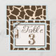Zebra- och giraffe-utskrifter med 3D-utseende snöre-trim, band och giraffe logotyp bord-kort.
