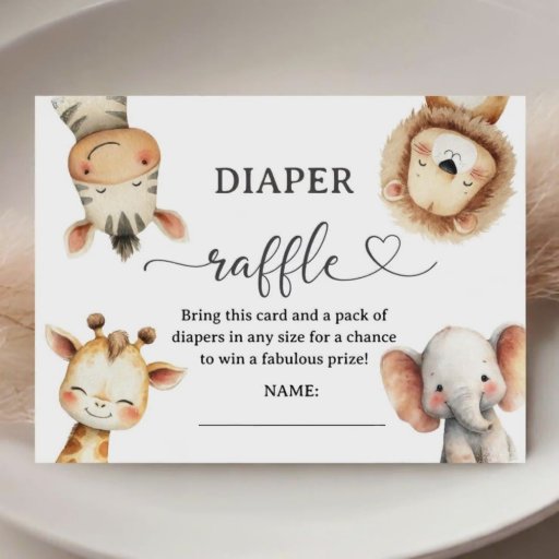 Fira det kommande ankomsten med vår "Safari Baby Shower baby shower-inbjudan!". Designen visar en grupp söta djungeldjur och rustika tropiska gröna blad, perfekt för en unik safari-tematisk baby shower. Anpassa dina inbjudningar idag och börja firandet!