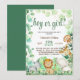 Vi presenterar vår förtrollande Baby Shower-kollektion! Detta förtjusande sortiment präglas av en fantasifull blandning av akvarellmagi, glänsande guldprägling och en safariinspirerad palett med frodig grönska och eukalyptusblad. Samlingen får liv genom närvaron av söta akvarellillustrationer av älskade djungeldjur, inklusive charmiga apor, majestätiska noshörningar, älskvärda elefanter och graciösa giraffer. Det är det perfekta valet för att tillföra en touch av under och elegans till din kommande baby shower-firande, där den förtrollande skönheten i det vilda möter den ömma glädjen över att välkomna ett nytt liv.