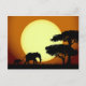 Denna illustration visar att en elefant från mor tillsammans med hennes elefant från baby går genom den afrikanska savannen under solnedgången.