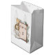 This medium-sized bag features the serene safari scene with friendly jungle animals in muted greens, beiges, and grays that match the party's coordinated theme. The personalized "Oliver" and "5" make it a special keepsake that builds anticipation for the gift inside.