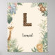Safari Jungle Personalized Name Monogram L Nursery Poster