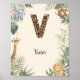 Safari Jungle Personalized Name Monogram V Nursery Poster