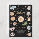 Cute Safari, Jungle, djurparker, ansikte födelsedag, svart inbjudan med elefant, giraffe, koala, lejon, zebra, krokodil, tiger, panda, fåglar, rhino och hippo.