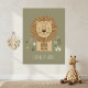 Färdigställ din safariinredning med detta charmiga och mysiga lejonporträtt. Konstverket visar ett sött, stiliserat lejon omgivet av en magnifik randig man. Mot en dämpad olivgrön bakgrund och med subtila botaniska detaljer, är designen både modern och mjuk. Den positiva texten "STARK & SÖT" gör detta till en inspirerande dekoration som uppmuntrar mod och vänlighet hos ett litet barn. Denna poster är ett utmärkt val för ett könsneutralt eller djungel-temat sovrum eller lekrum. En del av vår koordinerade 'Kid's Safari Decor'-samling. Not: designen är anpassad från generativt innehåll.
