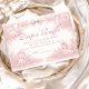 A soft and elegant baby shower design featuring delicate vintage-style blush pink toile illustrations. The frame is adorned with charming lambs, florals, celestial accents, and a romantic bow, creating a timeless storybook nursery aesthetic. Perfect for a classic, feminine celebration with a refined heirloom feel. The gentle pink palette and detailed engraving style give the design a sophisticated yet sweet atmosphere that works beautifully for traditional or cottagecore baby showers.