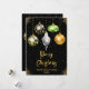 Skicka varma välgångsönskemål med detta djärva och stilrena vikta julkort med fem safariinspirerade ornament. Mot en svart bakgrund med gyllene gnistrande effekter visar varje ornament unika mönster - leopardtryck, zebraränder, tropiska blad och honungskaka-guld. Perfekt för familjer som älskar en modern twist på traditionen, detta kort blandar festlig glädje med exotisk elegans.
