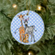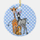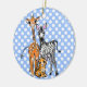 Safari-vänner, giraffe, zebra, tiger, blå polka julgransprydnad keramik