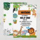 Denna inbjudningskort är för alla smarta barn som älskar djur Safari Vilda Ettan Födelsedagsinbjudan