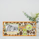 Zebra-, giraff-, leopard-, gepardtryck med 3D-utseende spetskantband och söta apa- och napphangtaggar.
