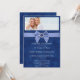 Denna vackra och eleganta design, kallad Sapphire Blue Bow 45-årsjubileum, har en vacker blå bakgrund. Det finns en snygg oäkta rosett med en safir- och diamedelstensäkt. På inbjudan finns det en plats för ett foto högst upp. Denna design är perfekt för paret som firar sin 45-årsdag med den speciella safir-inspirerade designen som en nickning till traditionell årsdagspresent. Detta skulle vara perfekt för din fyrtiofemte bröllopsdag eller fest!