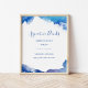 Anpassad tryckt bröllopsdryck menytecken med en abstrakt blå akvarellkant för att samordna med vår Saffirflod kollektion. Anpassa den med din anpassade signaturdryck meny detaljer. Använd designverktygen för att redigera teckensnitt och färger eller ladda upp dina egna foton för att skapa en unik bröllops välkomstskylt.