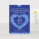 Personligt saffransbröllops kort med dina föräldrars äktenskapsår och personliga text. Exempel: Kära mamma och pappa på er saffransbröllop 45 år 25 maj 1971 till 2016. Blå saffranshjärtseffekt konst och design av Sarah Trett.