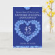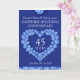 Personligt saffransfärgat bröllopsjubileumskort med dina föräldrars äktenskapsår och text på insidan. Exempel på text: Kära mamma och pappa på er saffransfärgade bröllopsdag 45 år 25 maj 1971 till 2016. Blå saffransfärgad hjärteffekt konst och design av Sarah Trett.