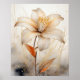 Att presentera "Saffron Serenity" poster, en hisnande konstnärlig återgivning av en vit lilja med gyllene accenter. Dess ömtåliga nyanser och eterdesign väcker en känsla av lugn och elegans, skapar det som en perfekt i vilket utrymme som helst. Öka din hemmadekoration med detta fängslande biet som utstrålar sofistikering och lugn.
