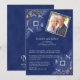 Denna vackra och eleganta design, kallad Sapphire and Silver 45th Wedding Anniversary, har en vacker blå bakgrund. I motsatta hörn finns ett vackert silverfolie-liknande damaskmönster med en silverbåge. I mitten av varje båge finns en falsk silver- och safirsten. Denna design är perfekt för paret som firar sin 45-årsdag med den speciella safir-inspirerade designen som en hälsning till traditionell årsdagspresent. Detta skulle vara perfekt för din fyrtiofemte bröllopsdag eller fest!
